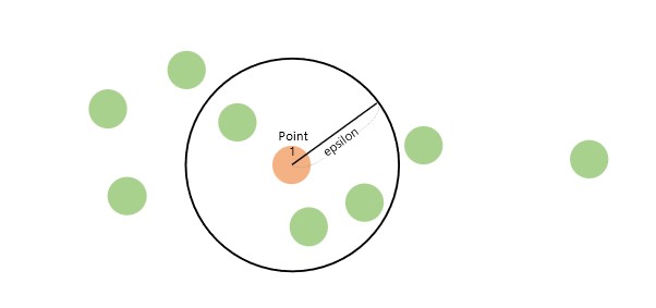 먼저 점이 있고, 그 점으로부터 거리(Epsilon)안에 점이 몇 개 있으면 하나의 군집으로 인식한다고 할 때, 이 조건을 충족하는 점을 중심점(Core Point)이라고 합니다.