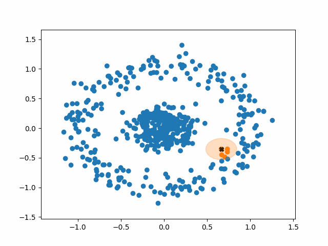 2. 선택한 데이터 포인트와 Epsilon 거리 내 있는 모든 포인트 탐색