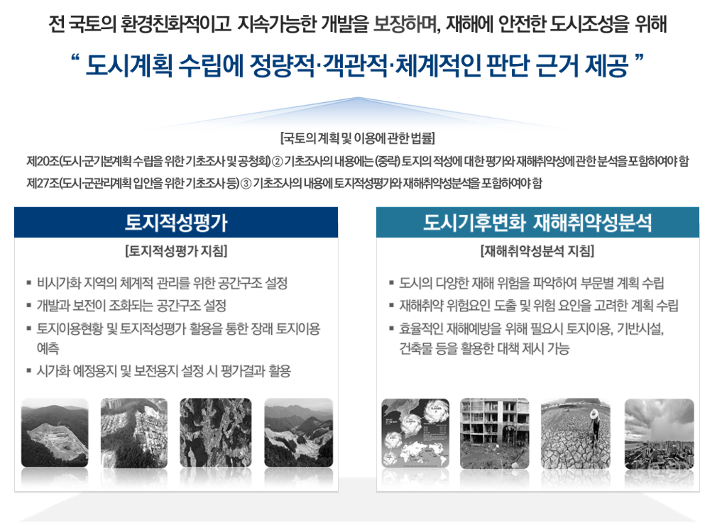 토지적성평가 및 재해취약성분석은 토지 및 도시·기후 특성의 여건변화를 종합적으로 고려하여